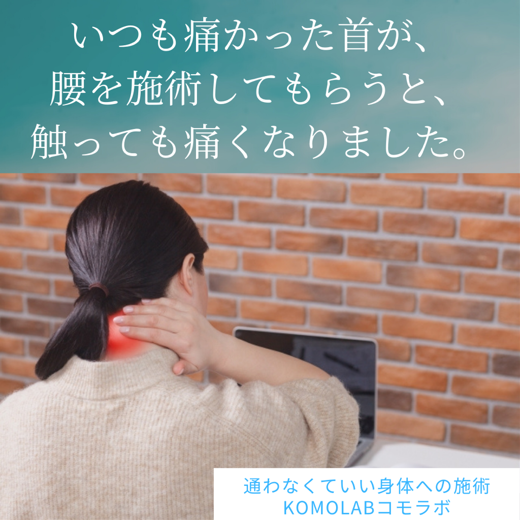 腰と背骨の関節の動きを改善すると、直後に首の圧痛が消失しました。