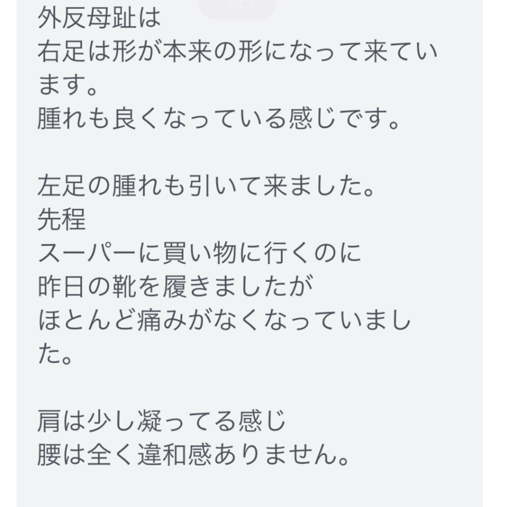 施術を受けると、歩くときの足の痛みがほとんどなくなりました。