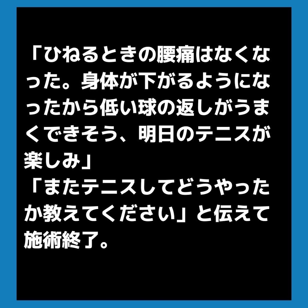 腰痛と趣味のテニスのパフォーマンス希望の20代の男性を施術しました。