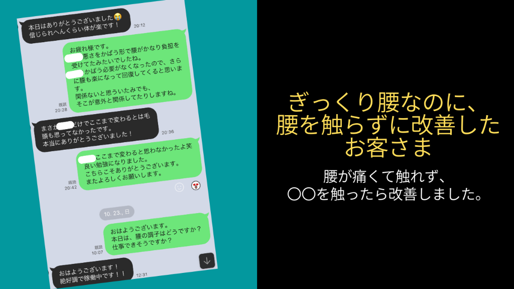 身体が軽い、痛くないというLINEが届きました。